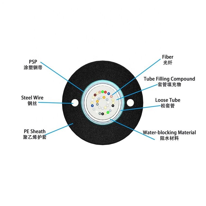 Η ίνα 250μm τοποθετείται σε έναν χαλαρό σωλήνα φιαγμένο από υψηλό πλαστικό συντελεστών. Τους σωλήνες γεμίζουν με μια αδιάβροχη ένωση πλήρωσης. Ο σωλήνας είναι τυλιγμένος με ένα στρώμα PSP κατά μήκος. Μεταξύ του PSP και του χαλαρού σωλήνα το νερό-εμποδίζοντας υλικό εφαρμόζεται για να κρατήσει το καλώδιο συμπαγές και υδατοστεγές. Δύο παράλληλα χαλύβδινα σύρματα τοποθετούνται στις δύο πλευρές της ταινίας χάλυβα. Τα παράλληλα χαλύβδινα σύρματα τοποθετούνται στην ταινία δύο πλευρών. Το καλώδιο ολοκληρώνεται με μια θήκη πολυαιθυλενίου (PE).